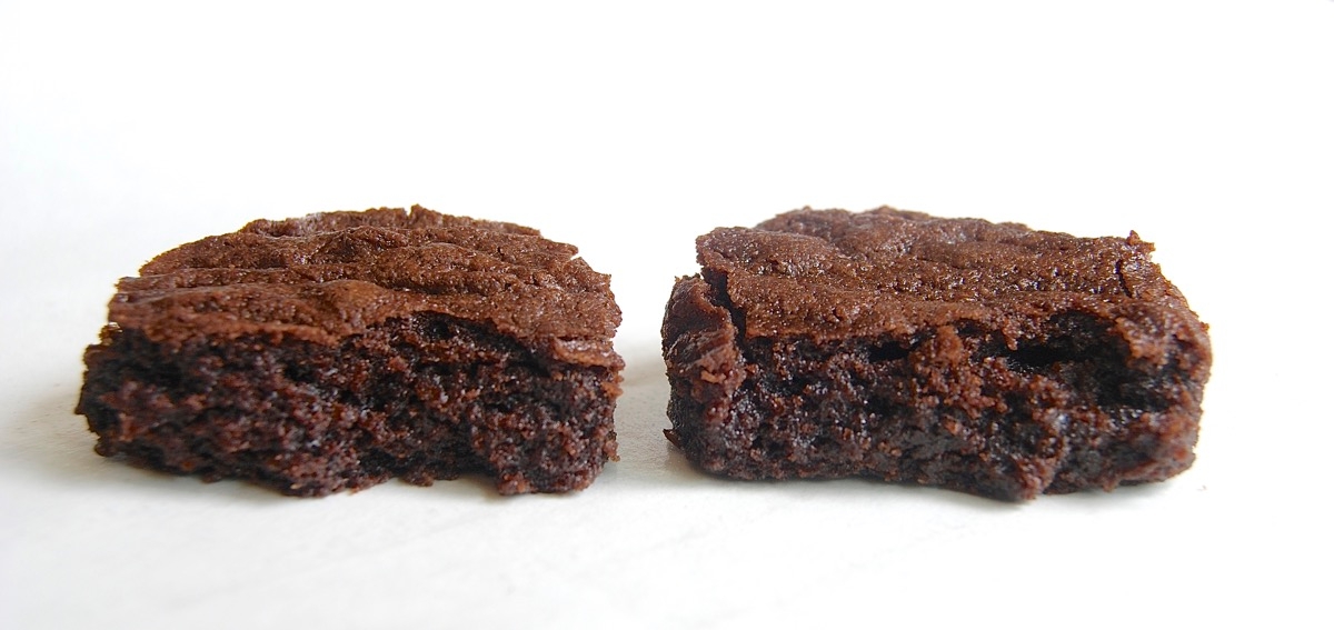 Here are our Quick and Easy Fudge Brownies, made with Measure for Measure (left) and with all-purpose flour (right), for comparison.