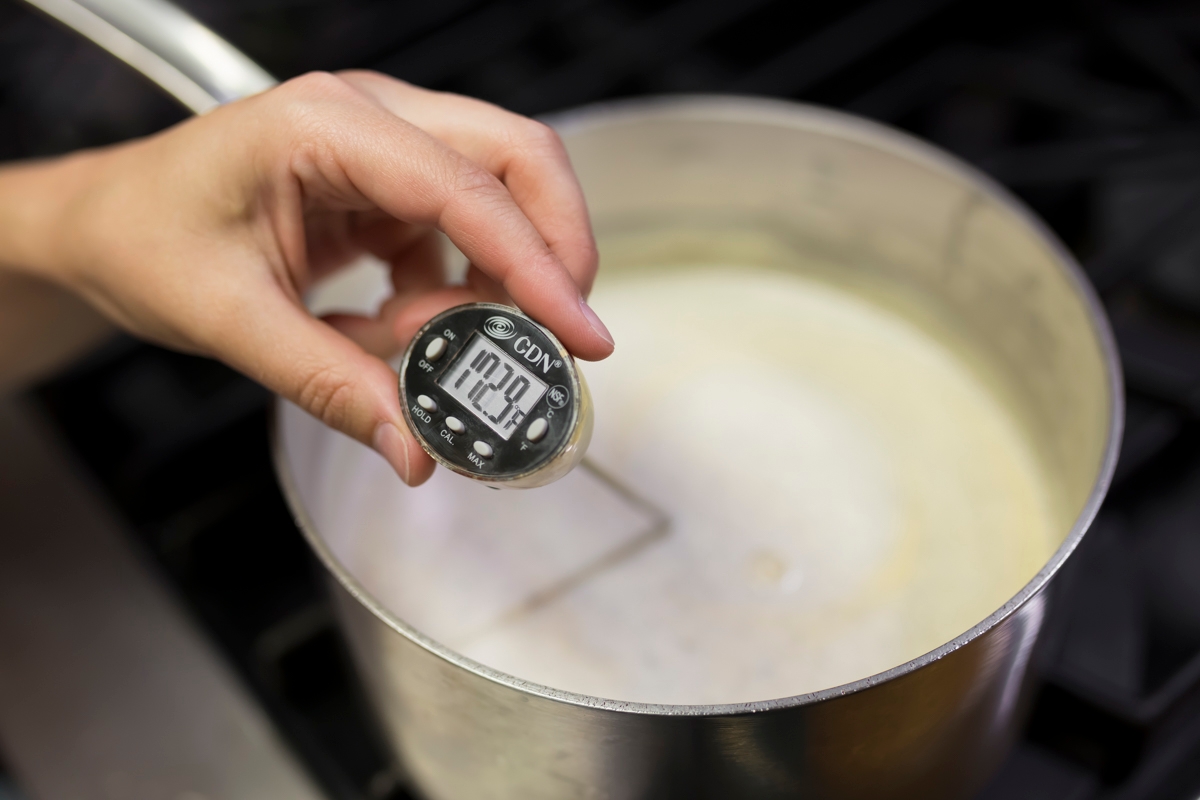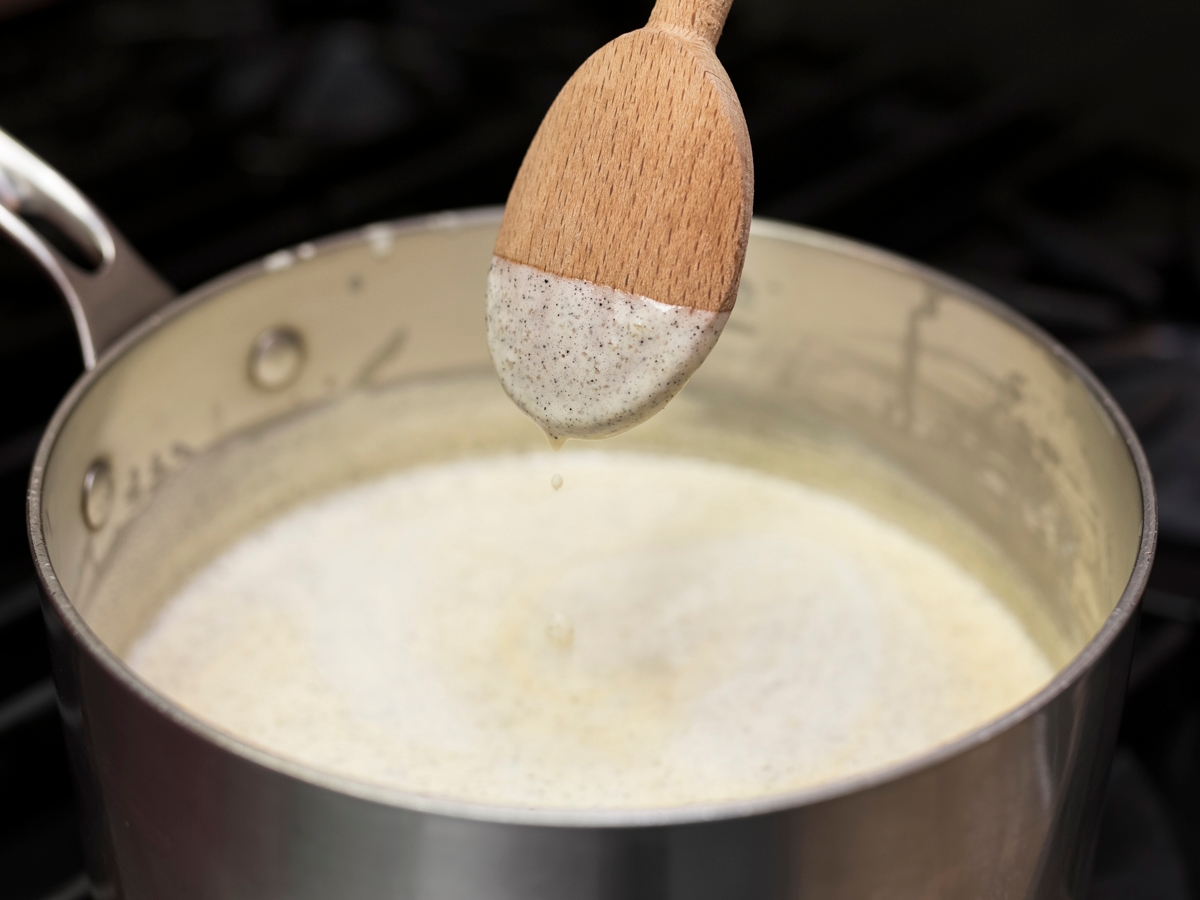 If you don’t have a thermometer handy, a good way to know you've reached the right temperature is with the spoon test. Dip a spoon into your cooked milk. If the base leaves a coating that you can swipe clean with a finger, it’s good to go.