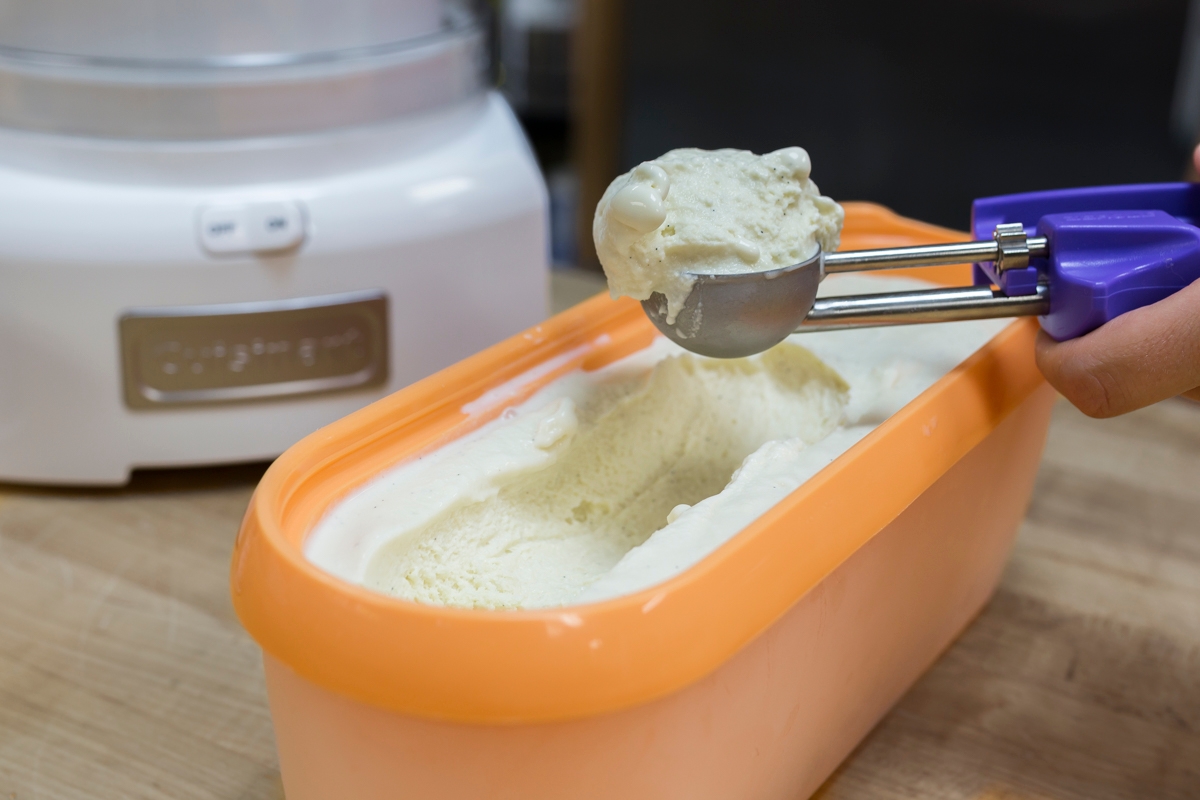Cuisinart's 1.5-quart ice cream maker is a fixture in our hectic test kitchen. Simply add the ingredients, push a button, walk away, and come back less than 30 minutes later to find wonderfully creamy, perfectly frozen ice cream.