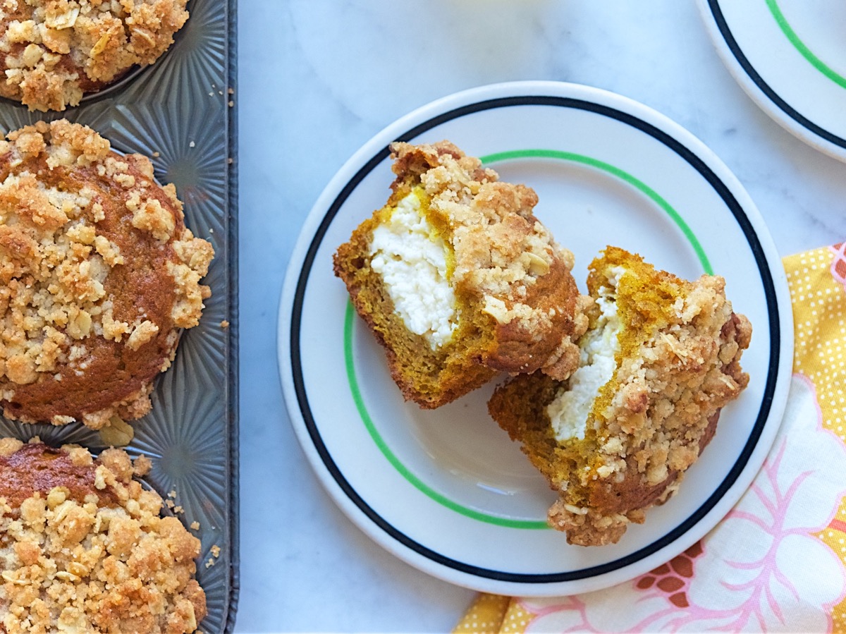 A wonderfully moist, tender muffin filled with sweetened cream cheese — and topped with streusel for good measure. One bite of this muffin will convince you: yes, you need to make these for your family. Or fellow foodies at work. Or the parents at Saturday soccer. These muffins are simply eye-roll, contented-sigh, satisfied-groan good.