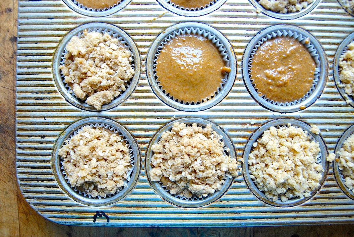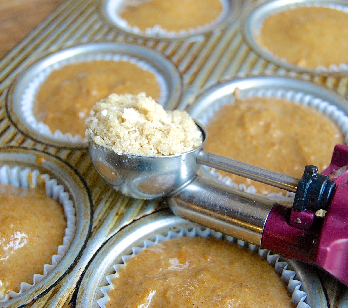 Well, there's that helpful tablespoon cookie scoop again! A heaping tablespoon scoop of streusel topping is the perfect amount for each muffin.