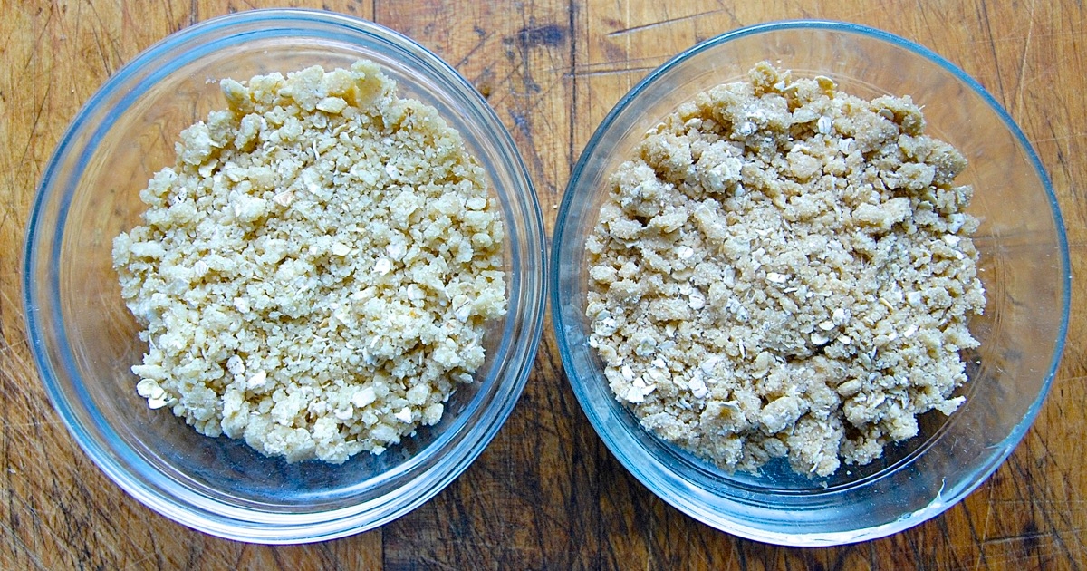 That's streusel made with all-purpose flour on the left, and with golden whole wheat on the right. There's a very slight color difference.