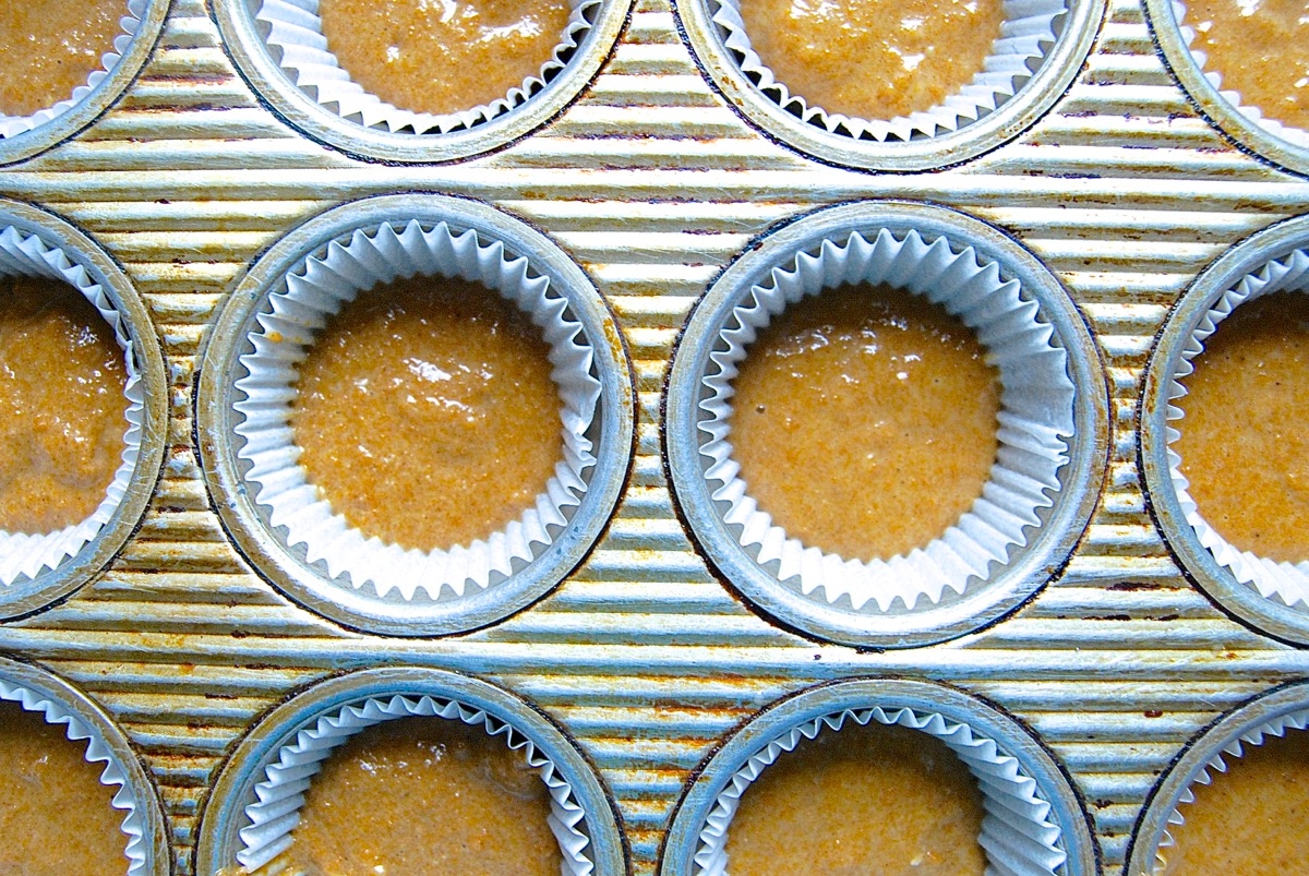 Scoop a scant 2 tablespoons batter into each muffin cup.
