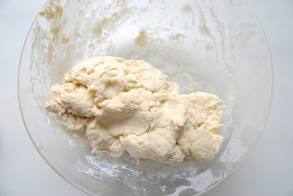 Mix quickly and gently for about 15 seconds, until you've made a cohesive dough. If the mixture seems dry and won't come together, don't keep working it; drizzle in enough milk — up to an additional 2 tablespoons (1 ounce) to make it cohesive.
