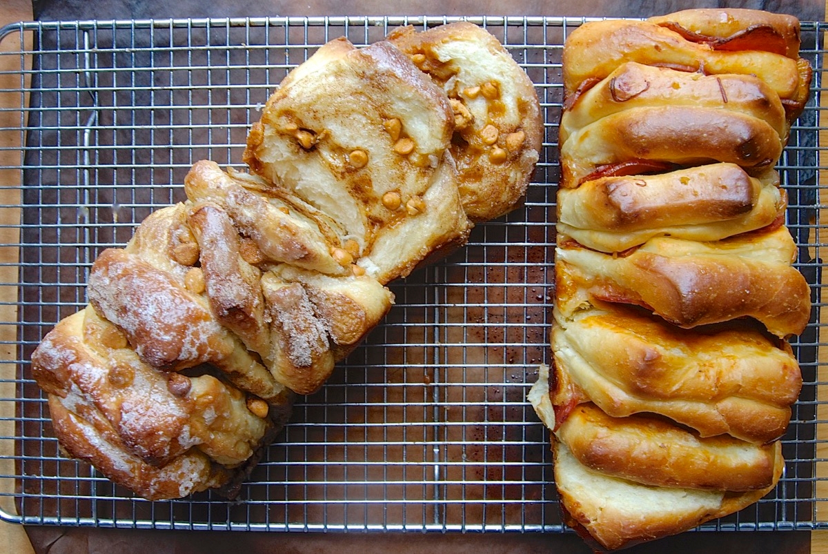 I've riffed on Rene's sweet filling to make a Butterscotch Cinnamon Loaf. And followed her suggestions for Pepperoni Pizza Loaf.