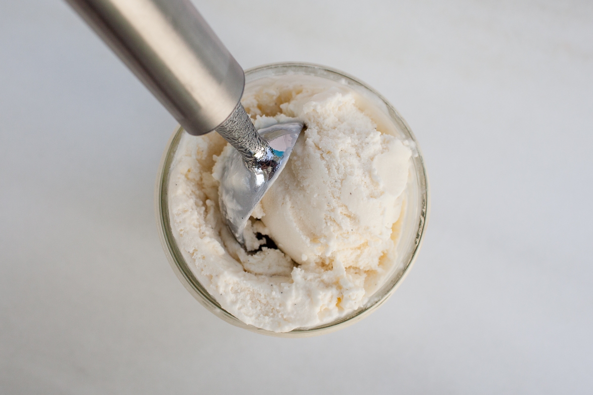 The amount of sugar can make a huge difference in ice cream’s flavor and texture. The addition of just 1/4 cup (50g) sugar to this base recipe improves both its 24-hour scoopability and its long-term shelf life.
