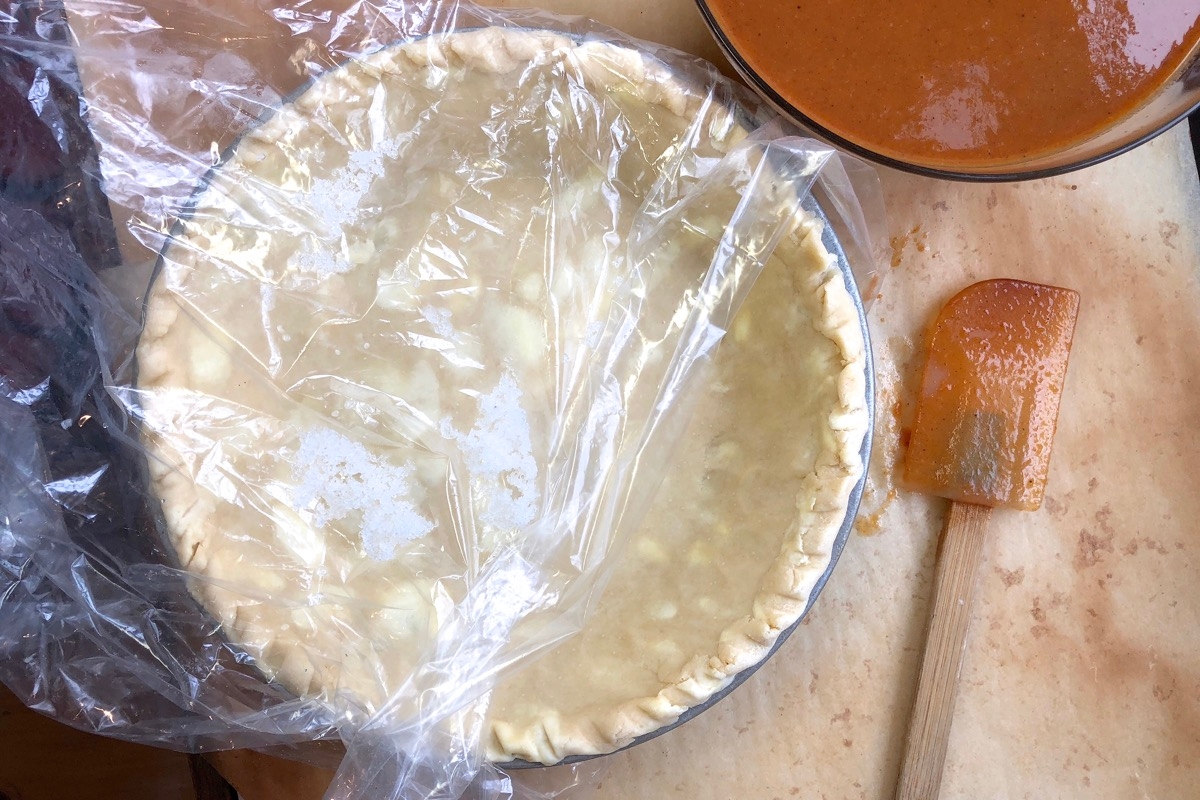 To save the most time down the road, freeze rolled-out pastry right in its freezer-to-oven pan. When you’re ready for pie, all you need to do is haul that handy crust out of the freezer, add filling, and bake your pie, giving it a bit longer in the oven since the crust was frozen.