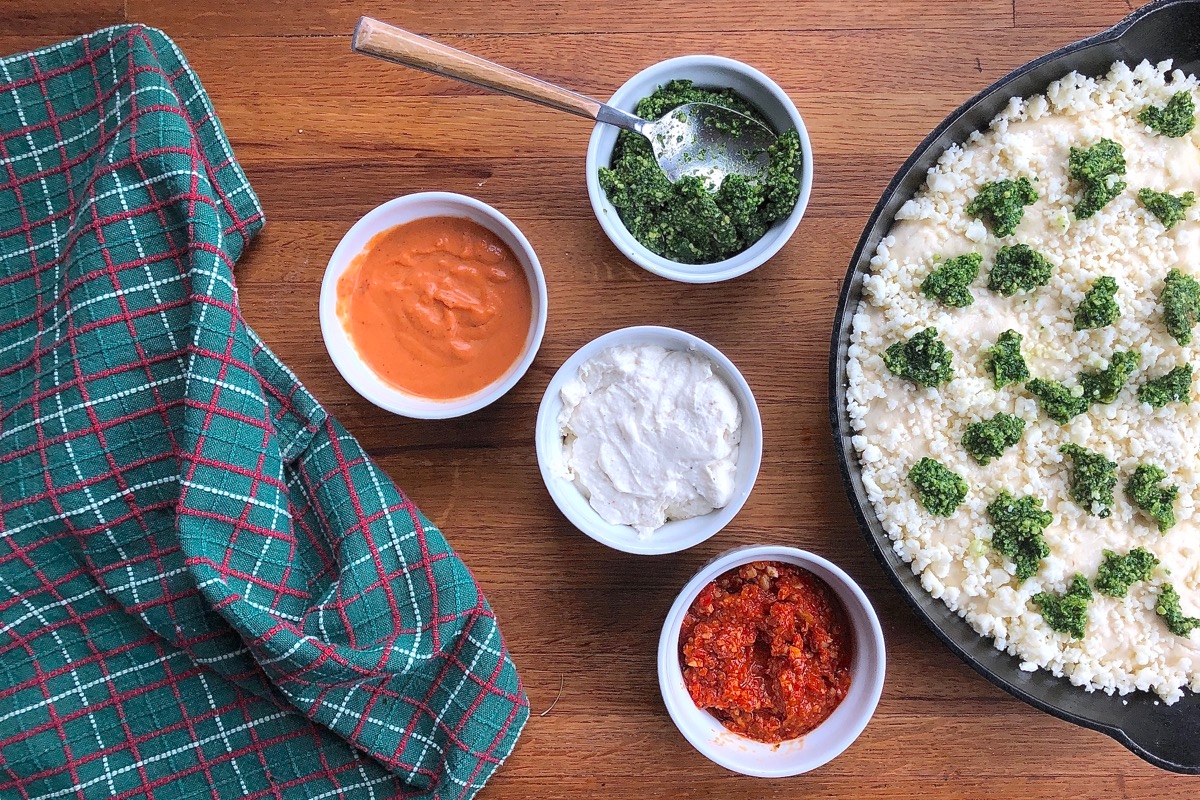 So which part of your favorite pizza should we dabble with first? Our Baker's Hotline folks tell me quite a few of you call to ask about pizza sauce options, looking for something beyond the usual red. And traditional though it is, there’s a world of other flavors beyond tomato that pair well with cheese, crust, and your favorite toppings.