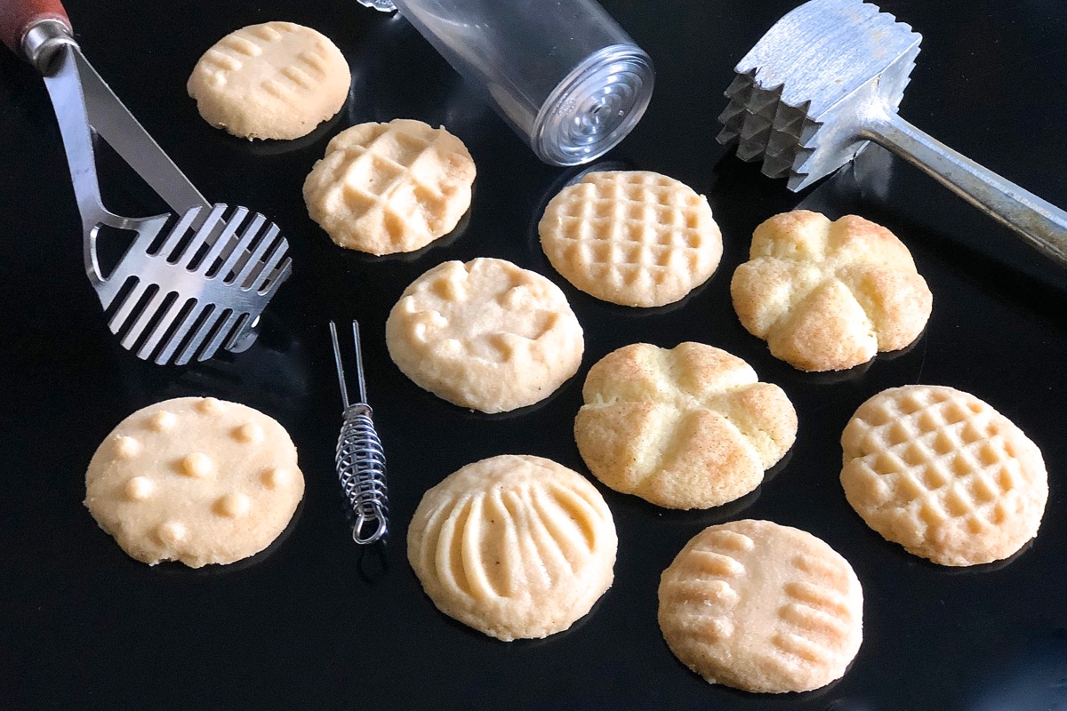 Have you found a flattening tool you're eager to try on your next batch of drop cookies? Start with our simple Shortbread recipe. Instead of pressing the dough into a pan, scoop it into balls (a teaspoon or tablespoon scoop works well). Flatten the dough balls and bake in a preheated 300°F oven for 25 to 30 minutes, or until the cookies are just beginning to brown around the edges. Enjoy your artwork!