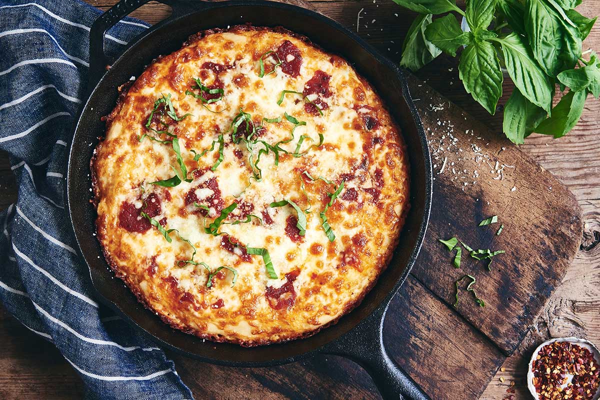 There’s so much to love about pan pizza, and now everyone can appreciate the goodness of this unique dish. Bake our Crispy Cheesy Pan Pizza if gluten is acceptable for your diet. If not, make our Gluten-Free Pan Pizza — it’ll be delightfully crispy and cheesy too.