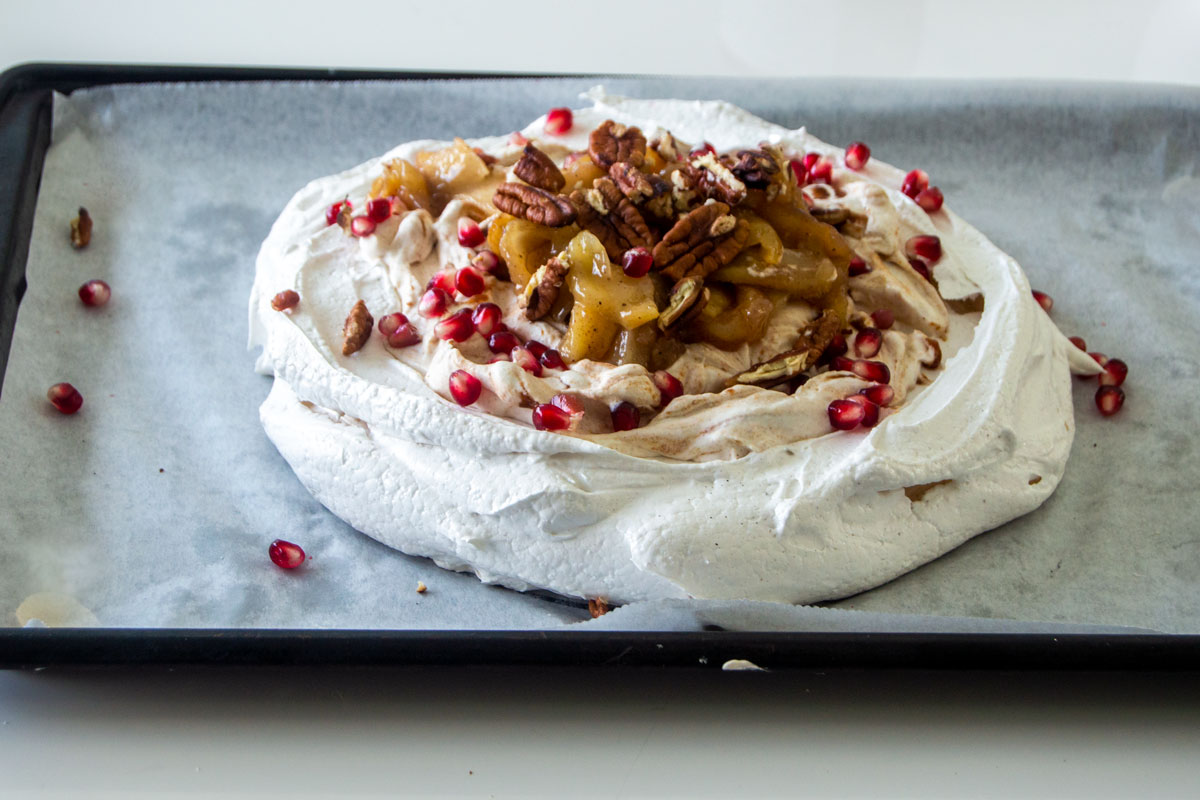 If you want to stick with a traditional fruit topping, you can find plenty of inspiration this time of year — it’ll just require a little extra effort to prepare, unlike summer fruits that can be added to pavlova fresh from the market.