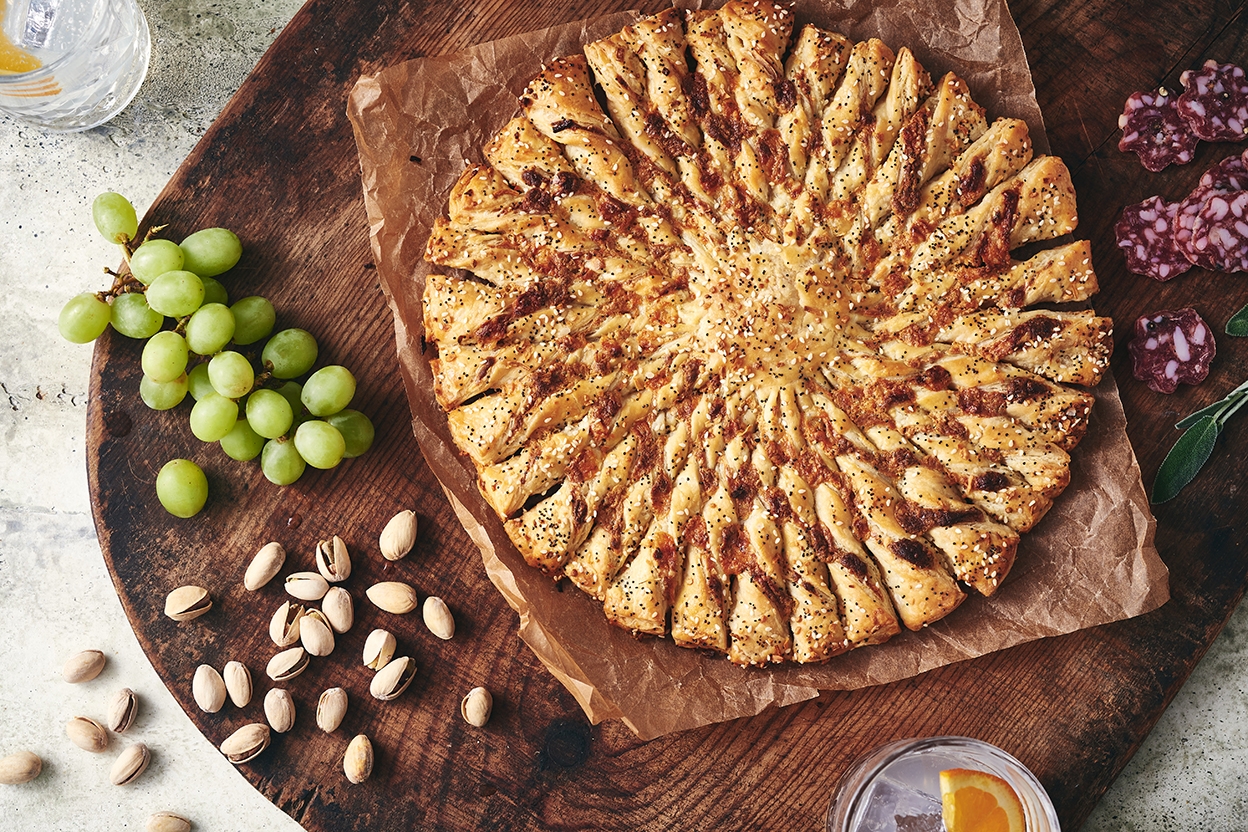 With numerous individual twists of flaky pastry, cheese, and Everything Bagel Topping, more often than not this centerpiece-worthy treat finds its way directly to the kitchen counter as a super-snackable appetizer before the main course. It’s also been known to be broken into later in the evening over a rousing game of charades.