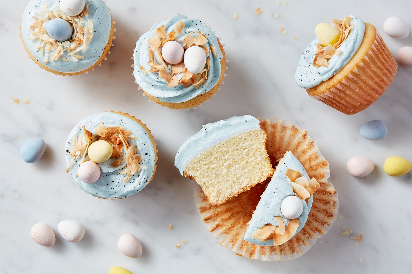 If you’re looking to bring some joy to your Easter table, try this fun twist on those cute robin egg cupcakes displayed in many bakery cases around springtime. With an eye-catching yet easy design, this cake is a wonderful celebratory centerpiece, no matter your skill level. — Lydia Fournier