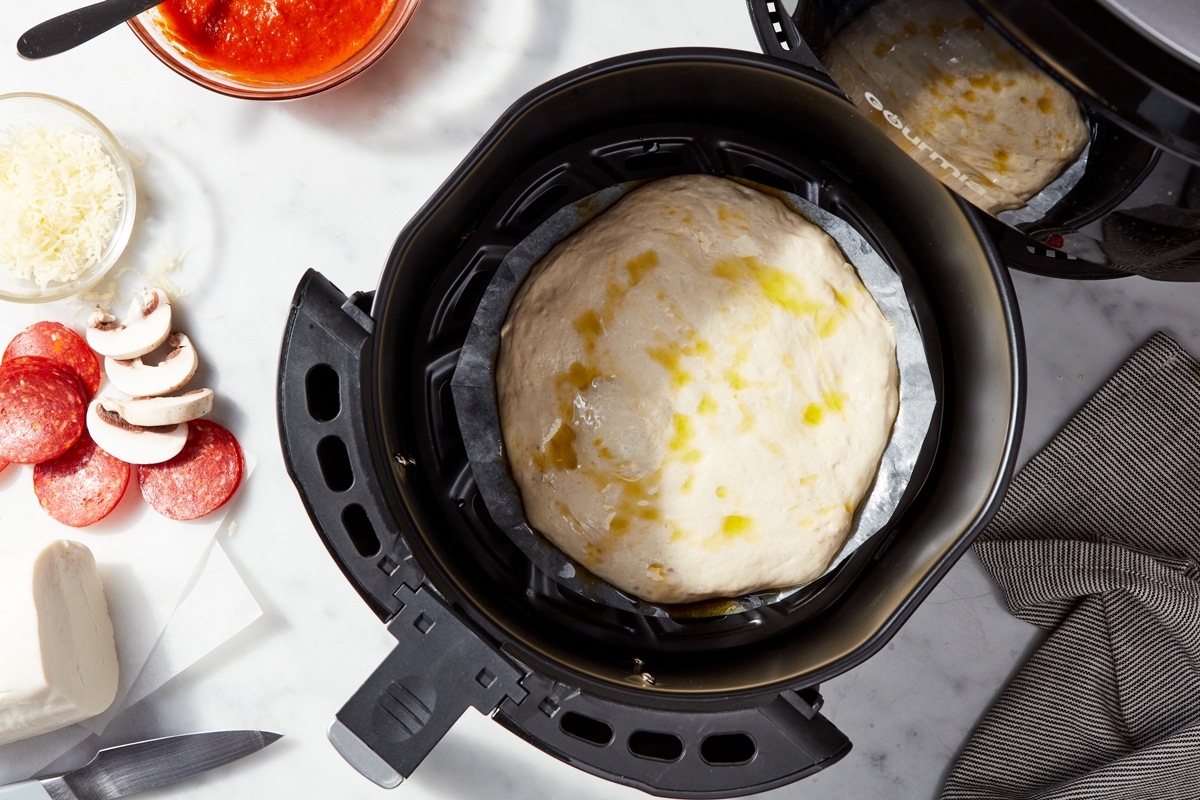 The air fryer yields crispy, cheesy pizza with golden brown, evenly baked crust. Our testing found the air fryer works well for nearly any pizza style, from thin crust to pan pizzas. There are a few tweaks we suggest for success — like topping the pizza halfway through baking — that will help you make the very best air fryer pizza.
