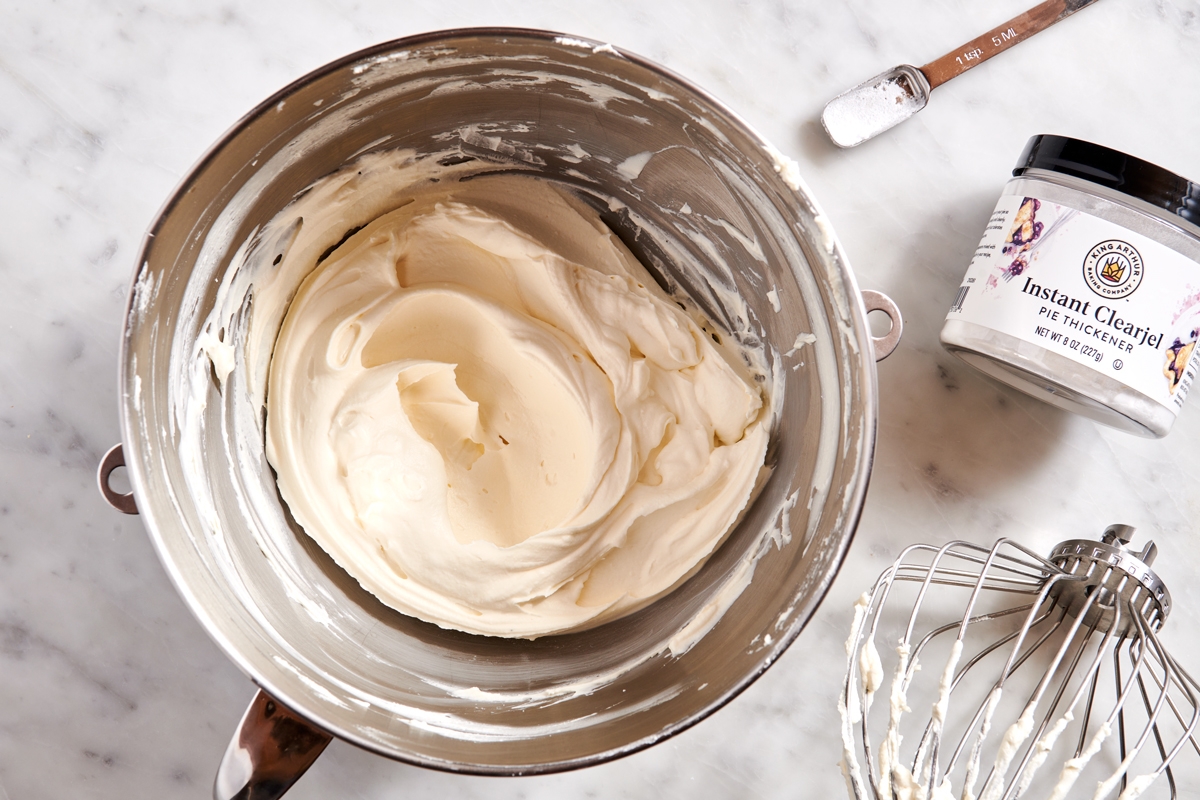 Whipped cream can suffer the same fate: If not stabilized, the network of fat molecules will collapse, losing the whipped-in air and returning the cream to its liquid state. To prevent a structural disaster and avoid a soupy, unstable mess, though, you can stabilize it by adding Instant ClearJel, cornstarch, or another dairy ingredient like mascarpone or crème fraîche.