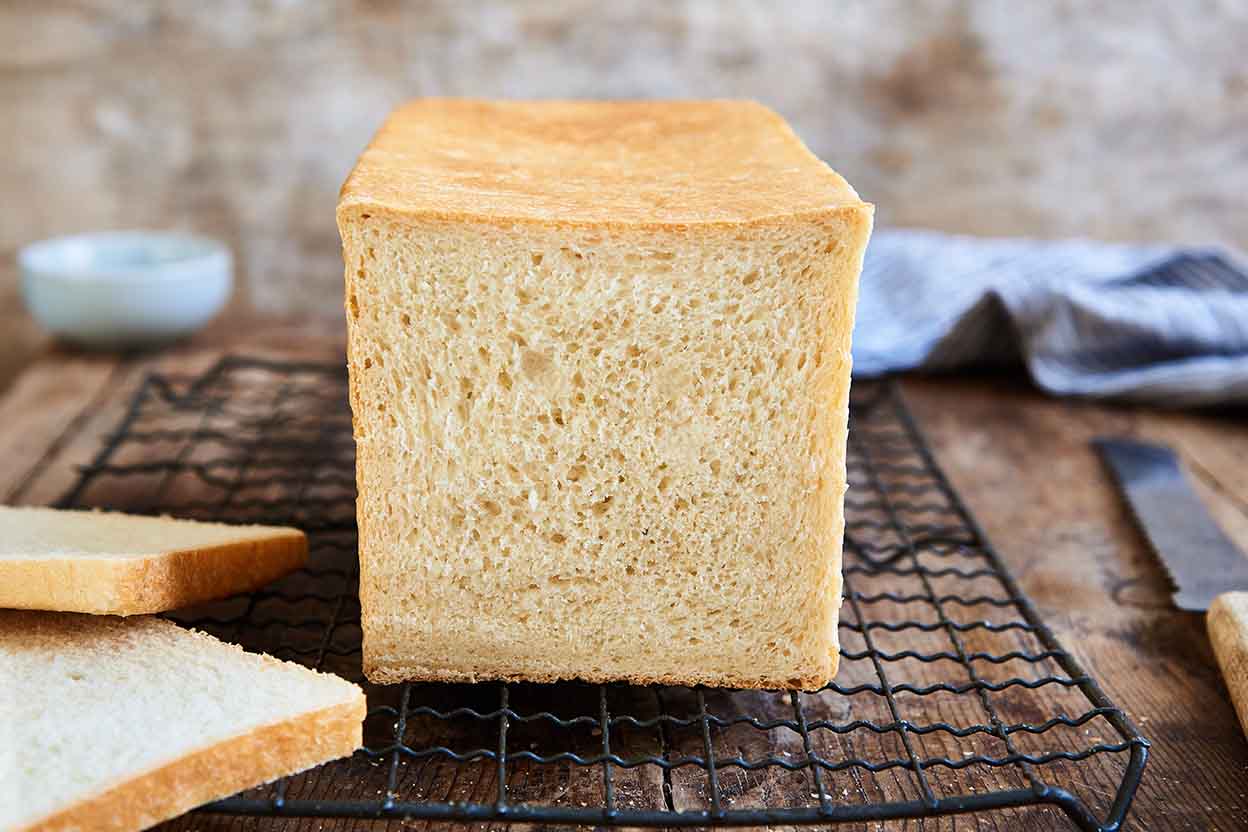 While most pain de mie recipes call for a traditional 13" x 4" x 4" pan, this one is perfect for our smaller 9" x 4" pan. If you have the larger pan, see our recipe for classic Pain de Mie.