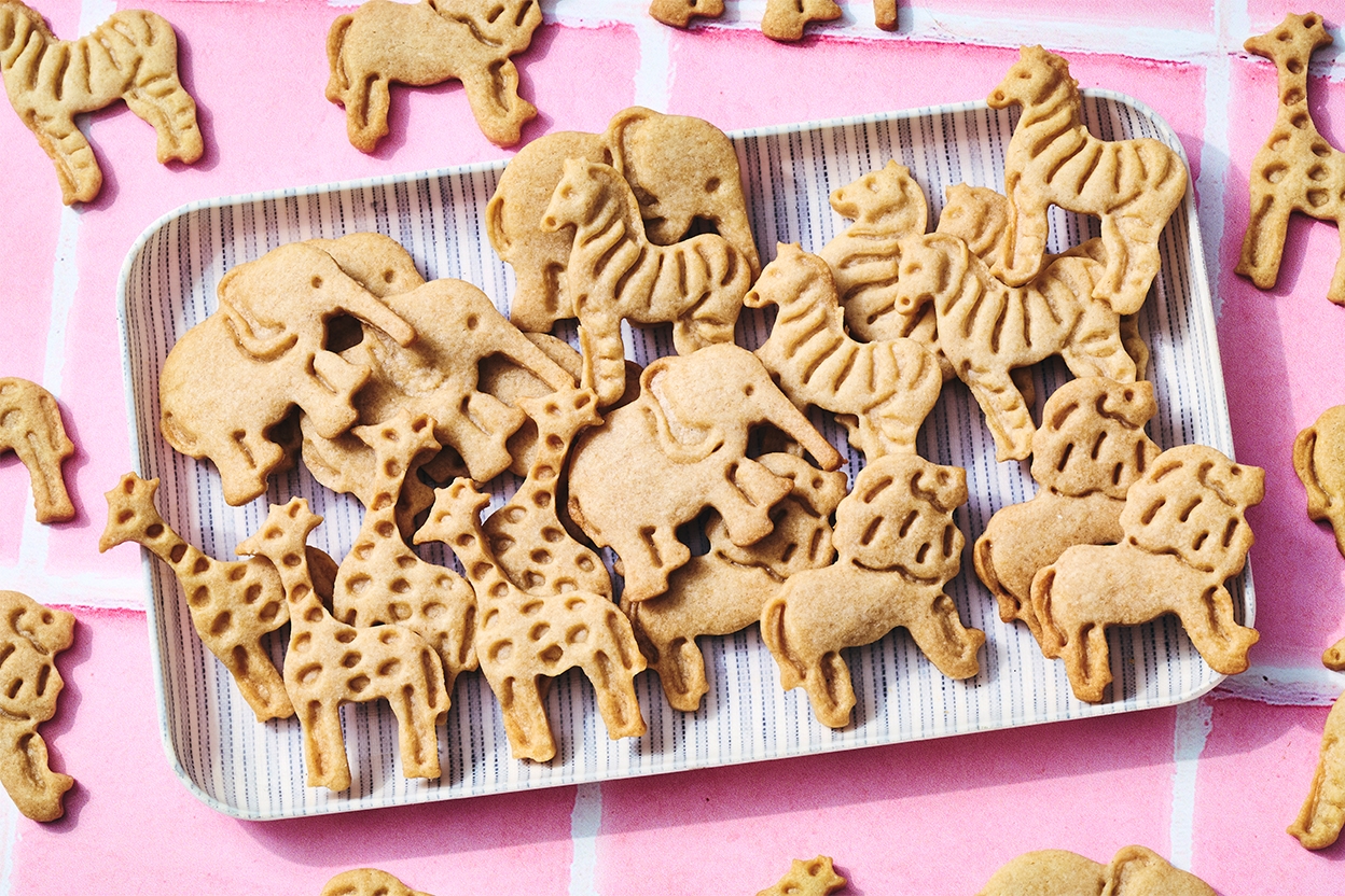 Remember the good old days of playing zookeeper with your own individual box of animal crackers? This is our version of the treat. They're not overly sweet, but do taste more like cookies than crackers.