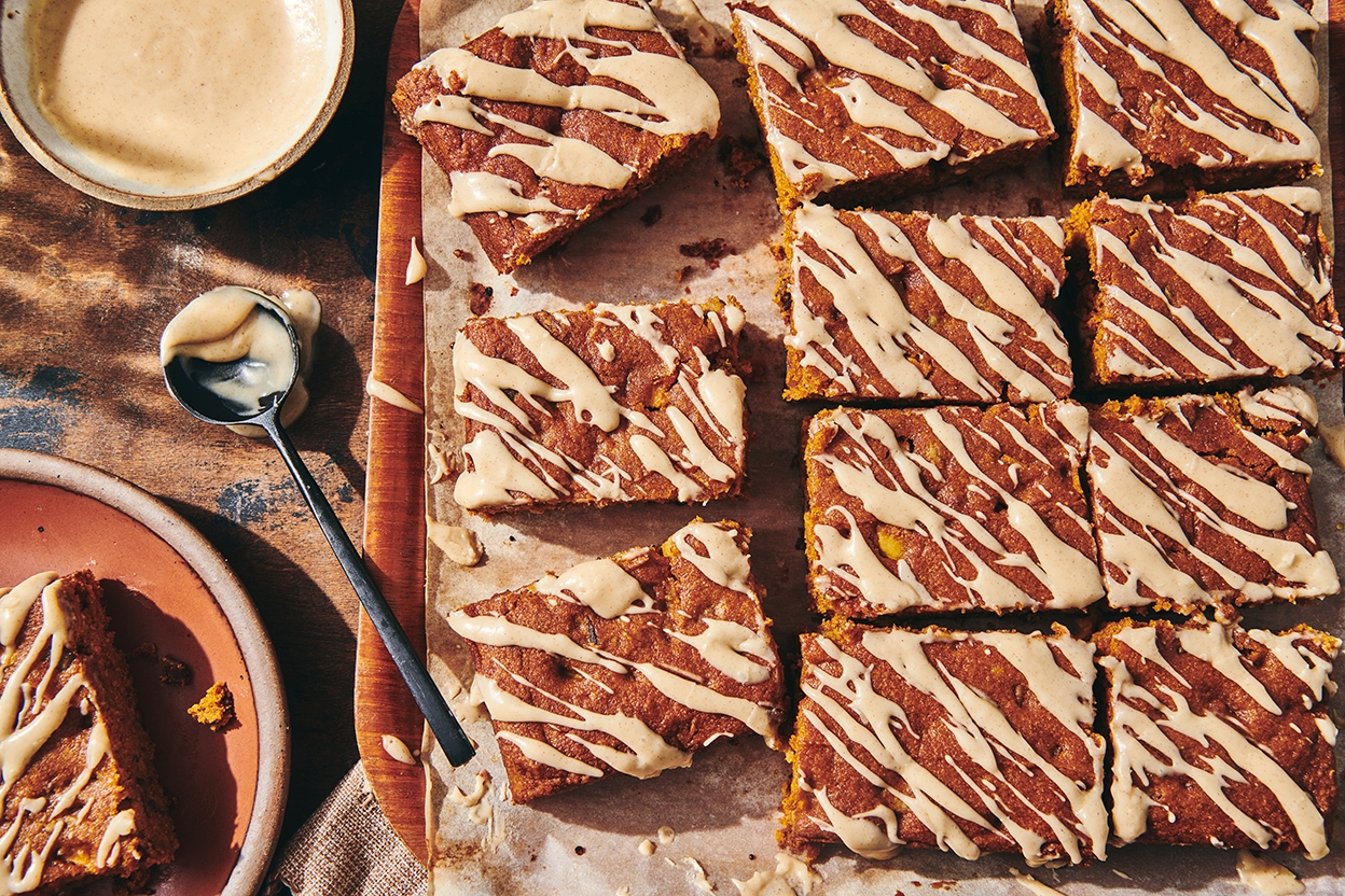 These chewy bars use apple butter to stand in for much of the fat you'd normally find in a bar cookie. Their robust apple flavor is out in front, with just enough sweetness to make them equally welcome for a snack as dessert. For a change, try making with them pumpkin butter instead of apple butter; the pumpkin is an excellent partner for the whole-grain flour in the recipe. This recipe comes to us from John Blair and Lucy Jane Webster, passionate home bakers from Toledo, Ohio.