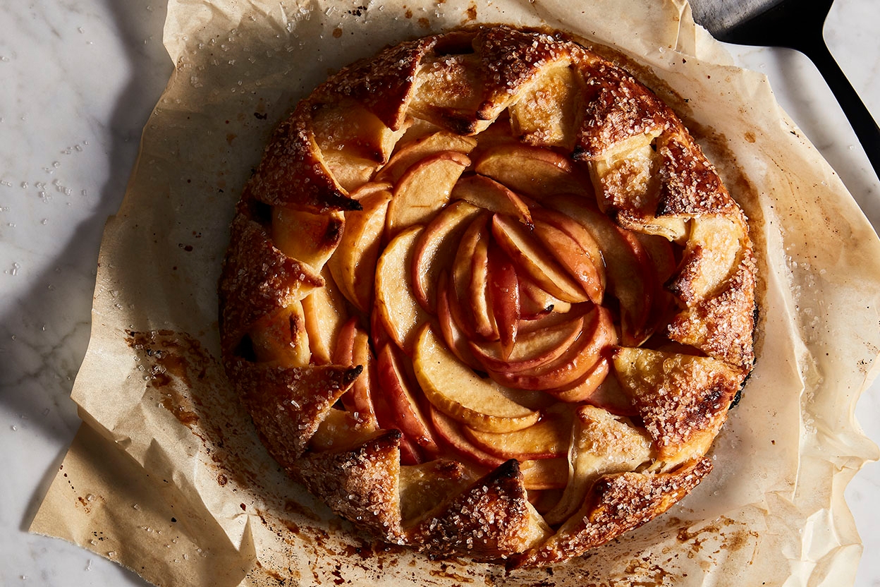 This beautifully simple pastry is very apple-forward. Where you might expect to taste cinnamon along with the apple, you'll discover the flavors of butterscotch and toasted pecans. Semolina and buttermilk in the pastry make it golden, tender, and very easy to roll out.
