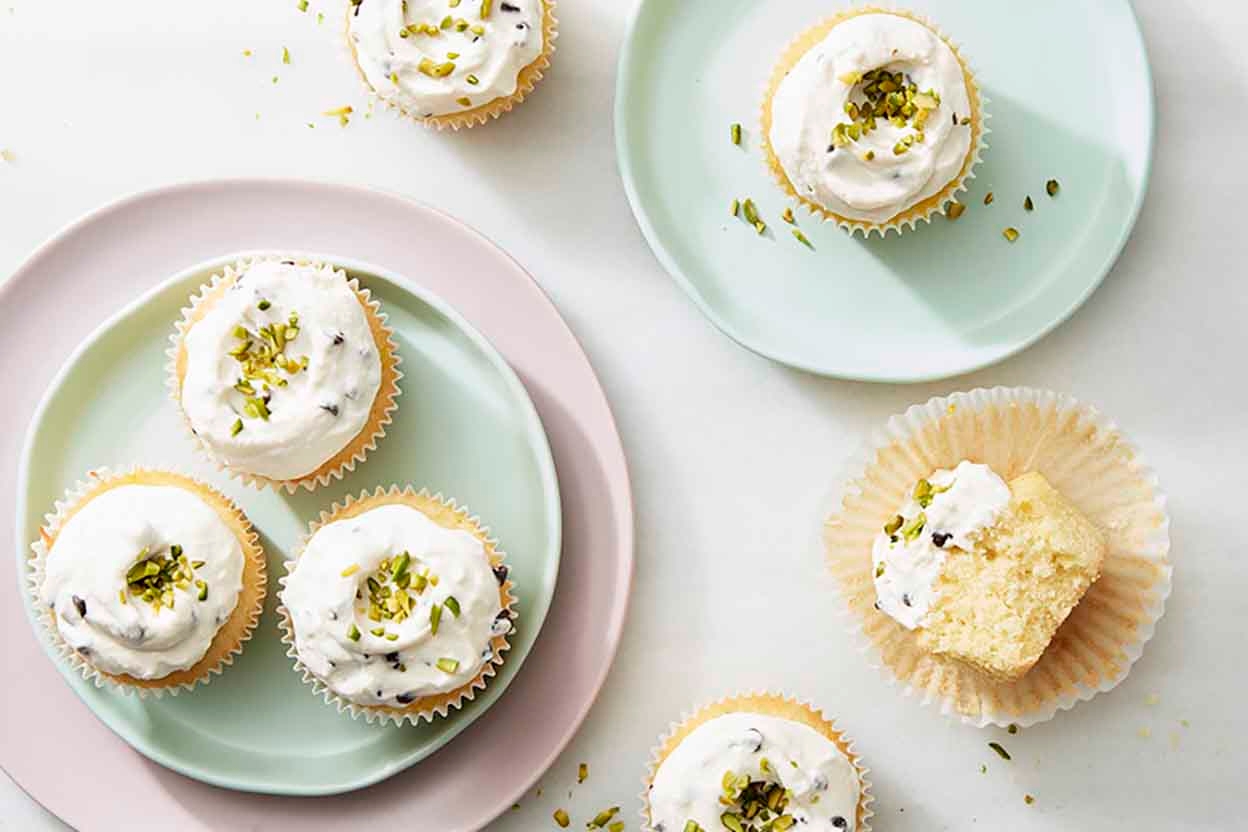 Tender vanilla pound cakes stand in for the traditional pastry shell in these pretty desserts topped with classic sweetened ricotta. We add chopped pistachios on top for a colorful finishing touch.