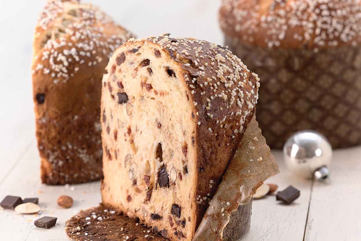 Sweet cherries, rich chocolate, and crunchy almonds take panettone to new heights.