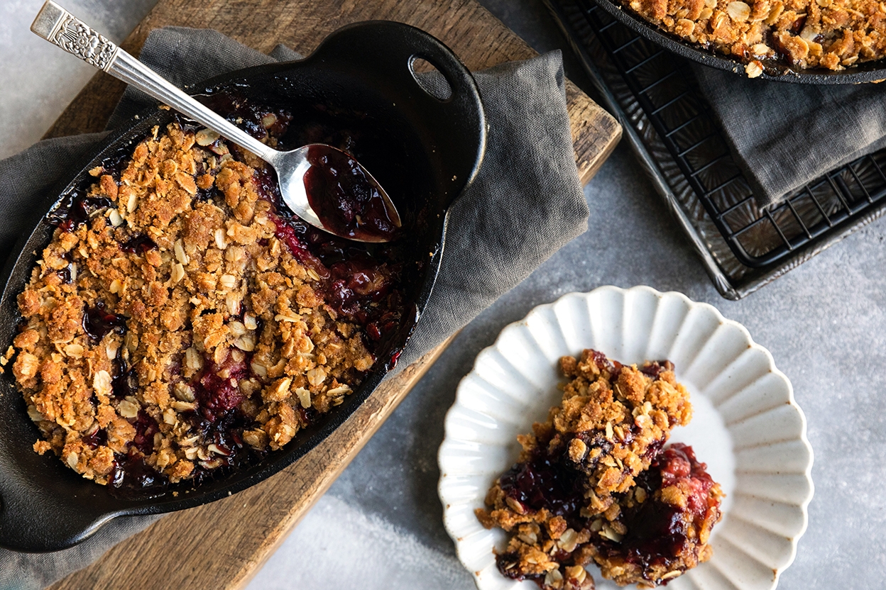 Flavors of summer and fall come together in this delightful crumble! It's an ideal way to use up the last of the season's berries while also dipping your toes into autumn's early apple varieties. The crunchy streusel topping ties it all together — top with vanilla ice cream for pure bliss.
