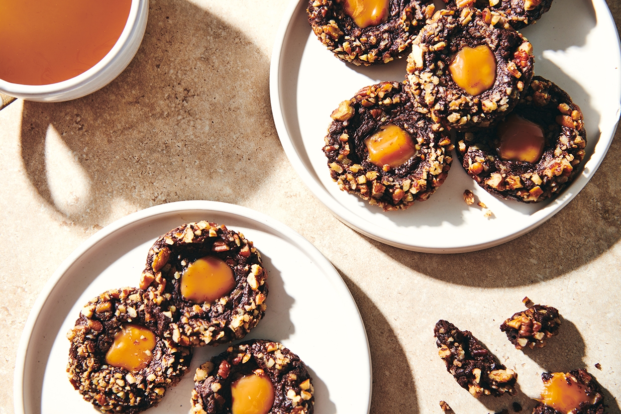 Chocolate Caramel Thumbprint Cookies