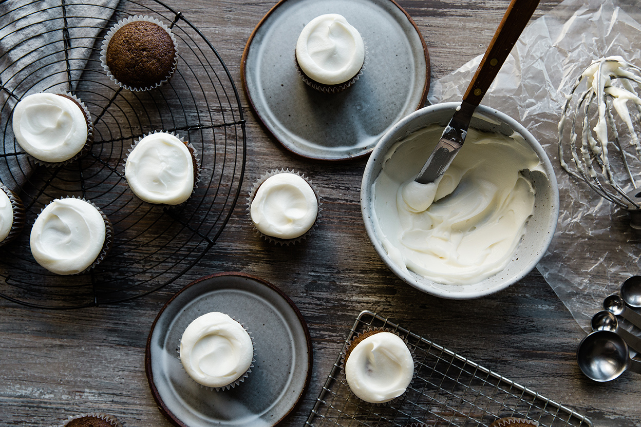 This frosting is nicely balanced between tangy and sweet, and spreads beautifully. It's the perfect complement for gingerbread, carrot cake, or pumpkin cake. A little chopped candied ginger on top dresses things up nicely.