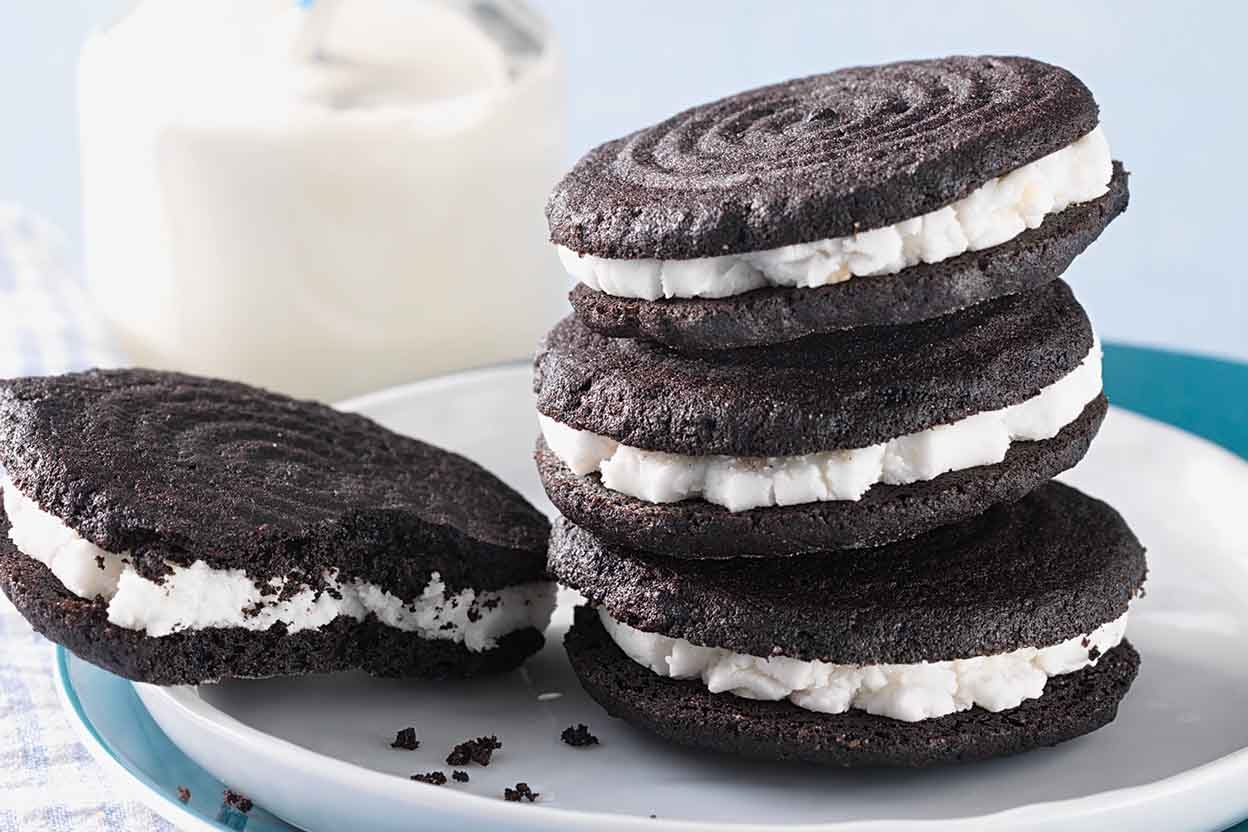 Place one level tablespoon filling in the center of one cookie; again, a teaspoon cookie scoop, slightly heaped, is perfect for this task. Place another cookie atop the filling, and squeeze to distribute the filling evenly. Repeat with the remaining cookies. Store in an airtight container.