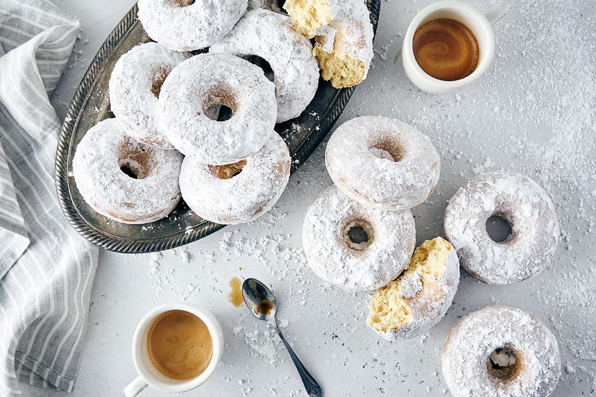 Imagine a big mug of hot coffee and a couple of delicious powdered-sugar donuts. Our friends who bake gluten-free can indulge in this classic treat again; it's easy to make with our Gluten-Free All-Purpose Biscuit & Baking Mix. Which doughnuts do you like best — chocolate chip, cinnamon sugar, or coconut? With a few small changes, this recipe will make magnificent examples of any of those; see "tips," below.
