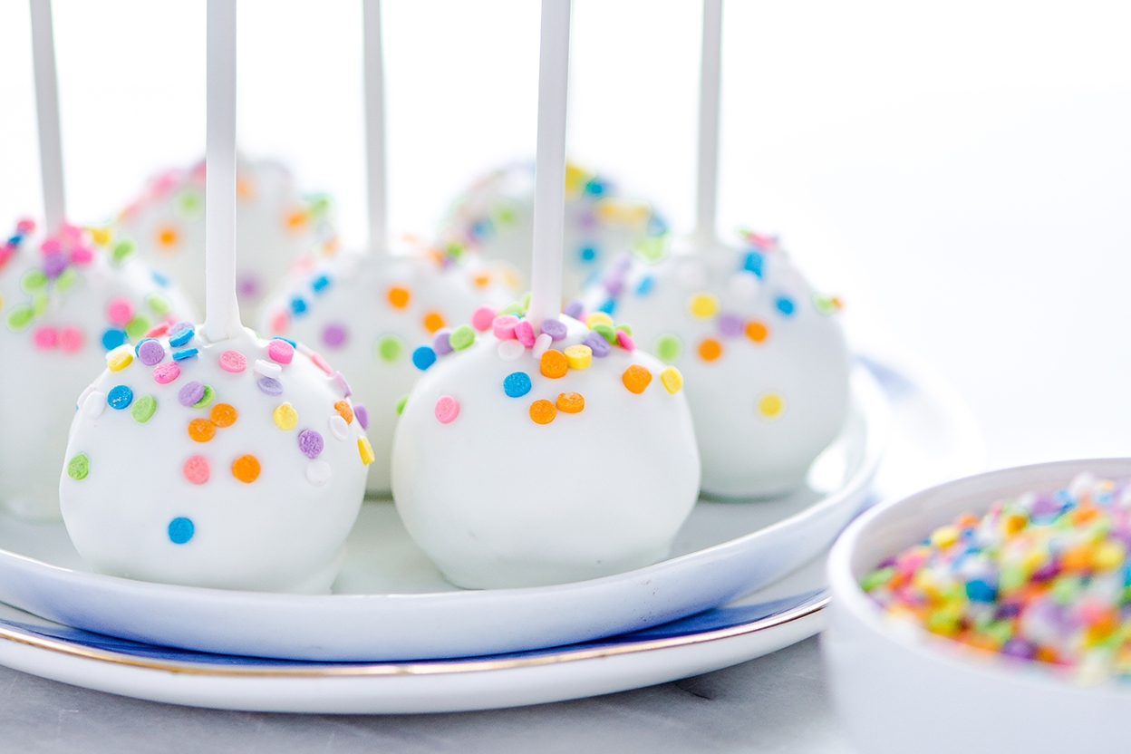 Remove about 10 to 15 cake balls from the refrigerator, keeping the remainder in the fridge. Dip the cake pops in the melted chocolate until completely coated. Shake off excess chocolate and place on a parchment-lined baking sheet.