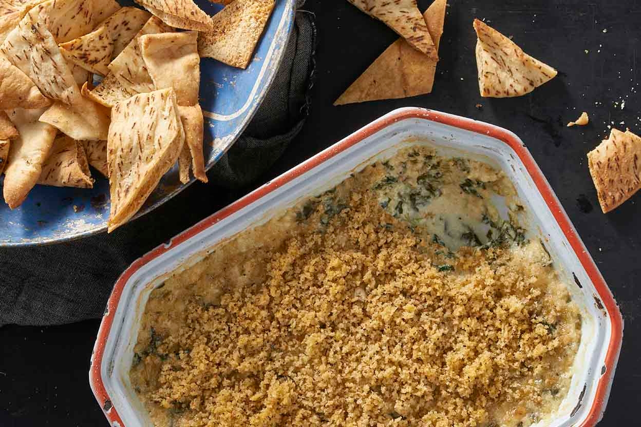 Baking transforms this simple list of ingredients into a dip that everyone will be talking about. The oven’s heat melds the cheeses with spinach and a bit of spice, creating a savory dish that works equally well with breadsticks, pita bread, crackers, or crudités.
