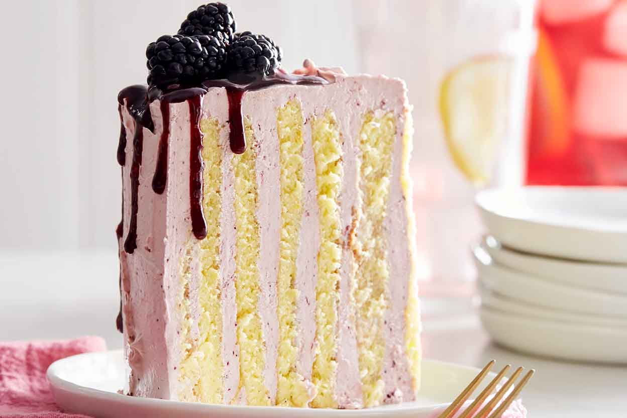 To serve: Remove the cake from the refrigerator 45 minutes before serving to bring it to room temperature. Drizzle the remaining purée over the top of the cake and garnish with fresh berries.