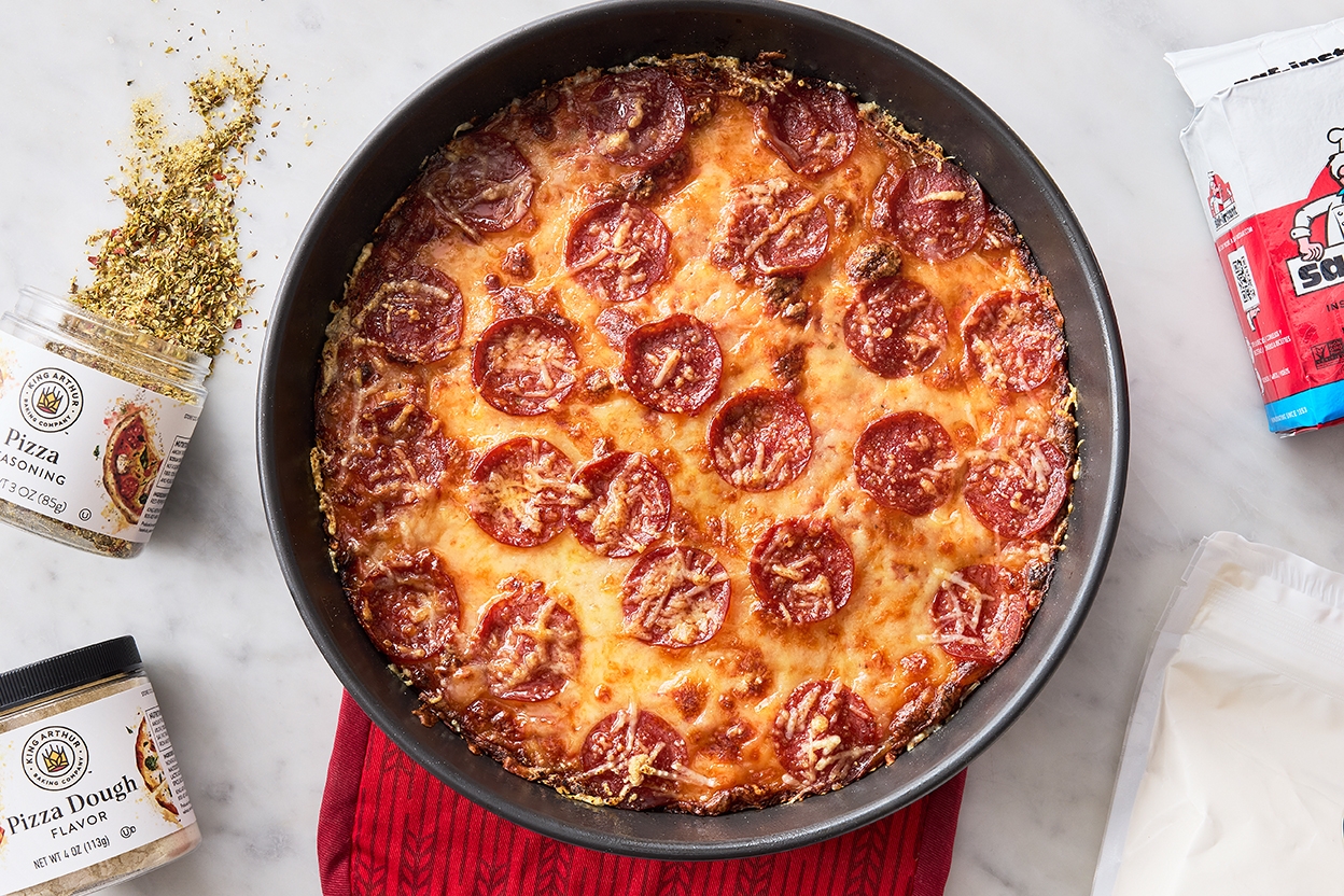 This easy pan pizza delivers everything you love about pizzeria-style pies right from your own kitchen. With an airy, light crust thanks to our Pizza Flour Blend, it bakes up beautifully in either an 11" deep dish pan for a taller, breadier base or a 9" x 13" pan for a thinner, crispier bite. We suggest an array of classic toppings as a starting point (mozzarella plus Parmesan cheese is highly recommended), but this pan pizza is perfectly suited to your favorite ingredients. Best of all, as it bakes, the cheese melts and crisps at the edges of the pan, creating that irresistible golden, crunchy border that’s often the first to disappear at the table.