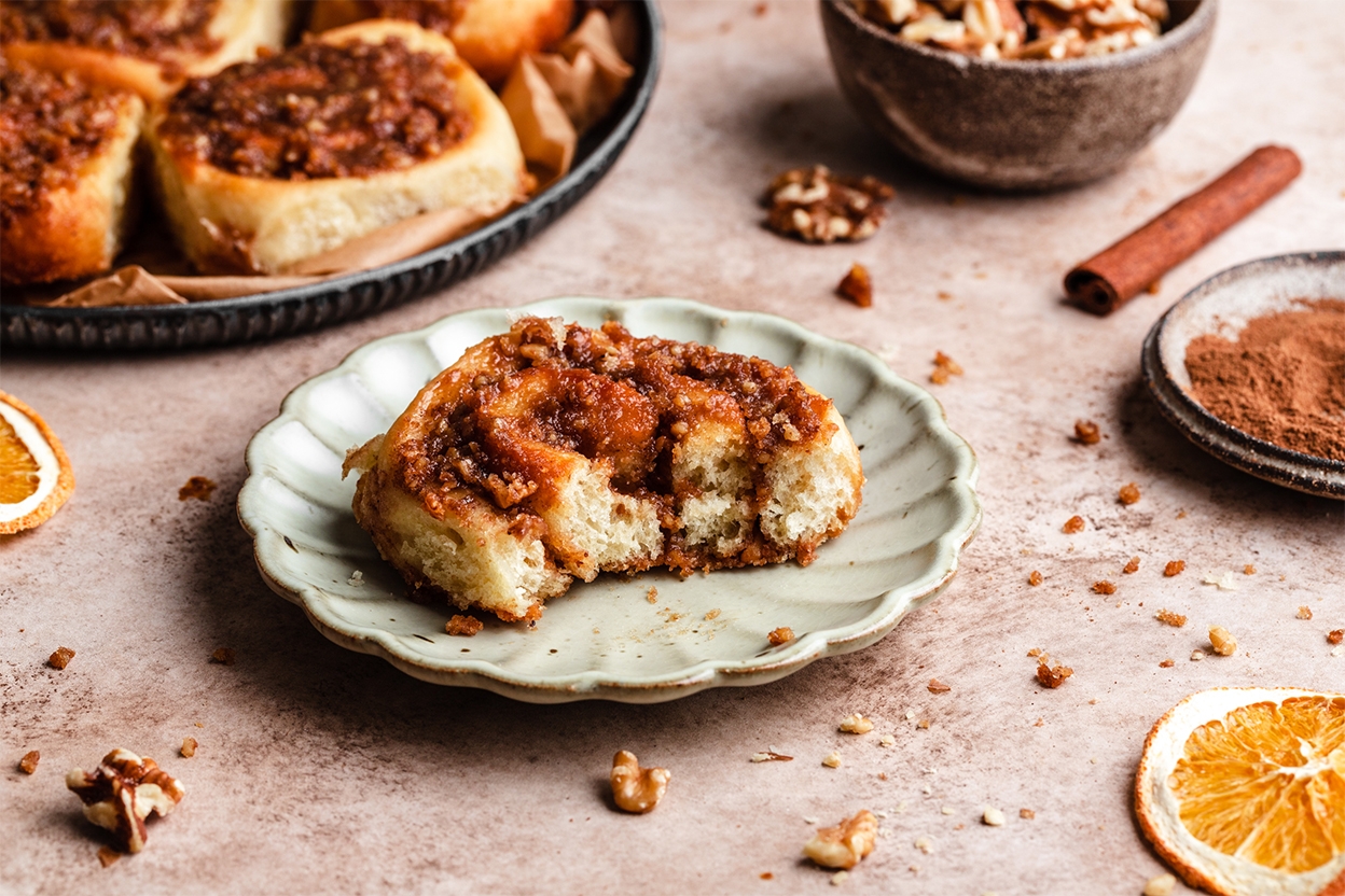 These soft, tender Orange Sticky Rolls bake on top of a sweet glaze; invert them after baking and let the molten glaze drip down over the surface, just like classic sticky buns but with a citrusy kick. Orange zest in the filling adds a bright flavor, and the walnuts give the rolls a welcome crunch.