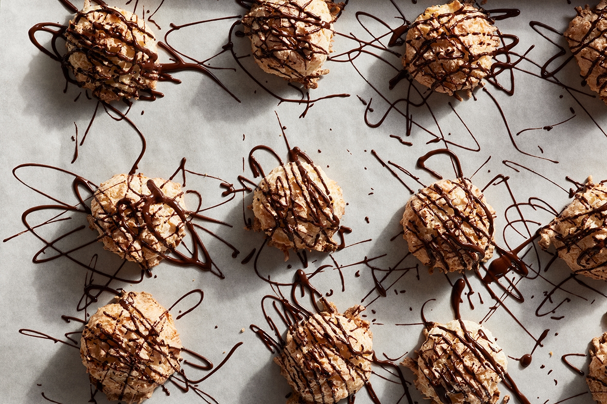 Standing tall with their lightly toasted edges, these chewy and moist cookies are a beloved item in the King Arthur Bakery case thanks to their intense coconut flavor. And depending on how you observe Passover, they can be a welcome dessert for the holiday.