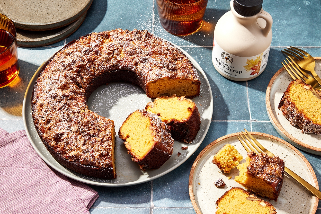 When we first baked Ken Haedrich’s Pecan-Crust Sweet Potato Pound Cake, originally published in The Old Farmer’s Almanac’s Everyday Baking issue, we were lovestruck: It’s rich, moist, and subtly spiced to complement, rather than overshadow, the natural flavor of sweet potatoes. We’ve adapted the recipe slightly to include the crunchy pecan crust on both the top and bottom, along with a touch of maple syrup in the cake for sweetness.