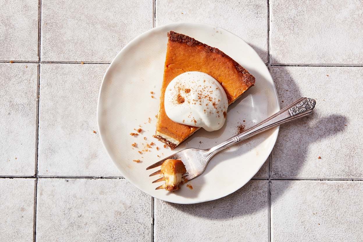 Place the pie on a baking sheet and bake for 15 minutes. Reduce the oven temperature to 350°F and bake for 40 to 45 minutes more, covering the edges with a pie crust shield or foil if browning too quickly. The pie is done when it looks mostly set but with a slightly wobbly center; the center should read 165°F when measured with a digital thermometer. Remove from the oven and let cool to room temperature. Transfer to the refrigerator and chill completely (at least 2 hours) before serving.