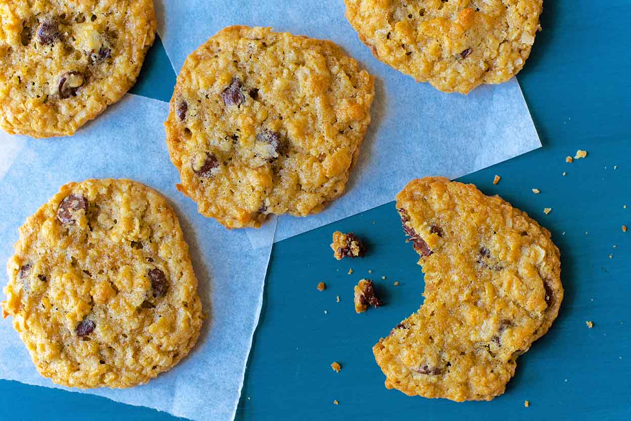 These cookies will knock your socks off with sweetness! Loaded with chocolate chips, shredded coconut, and crispy cereal, every bite promises a bounty of texture. Kids will love them with a glass of ice-cold milk; the more "mature" folks can enjoy them with a cup of hot coffee.