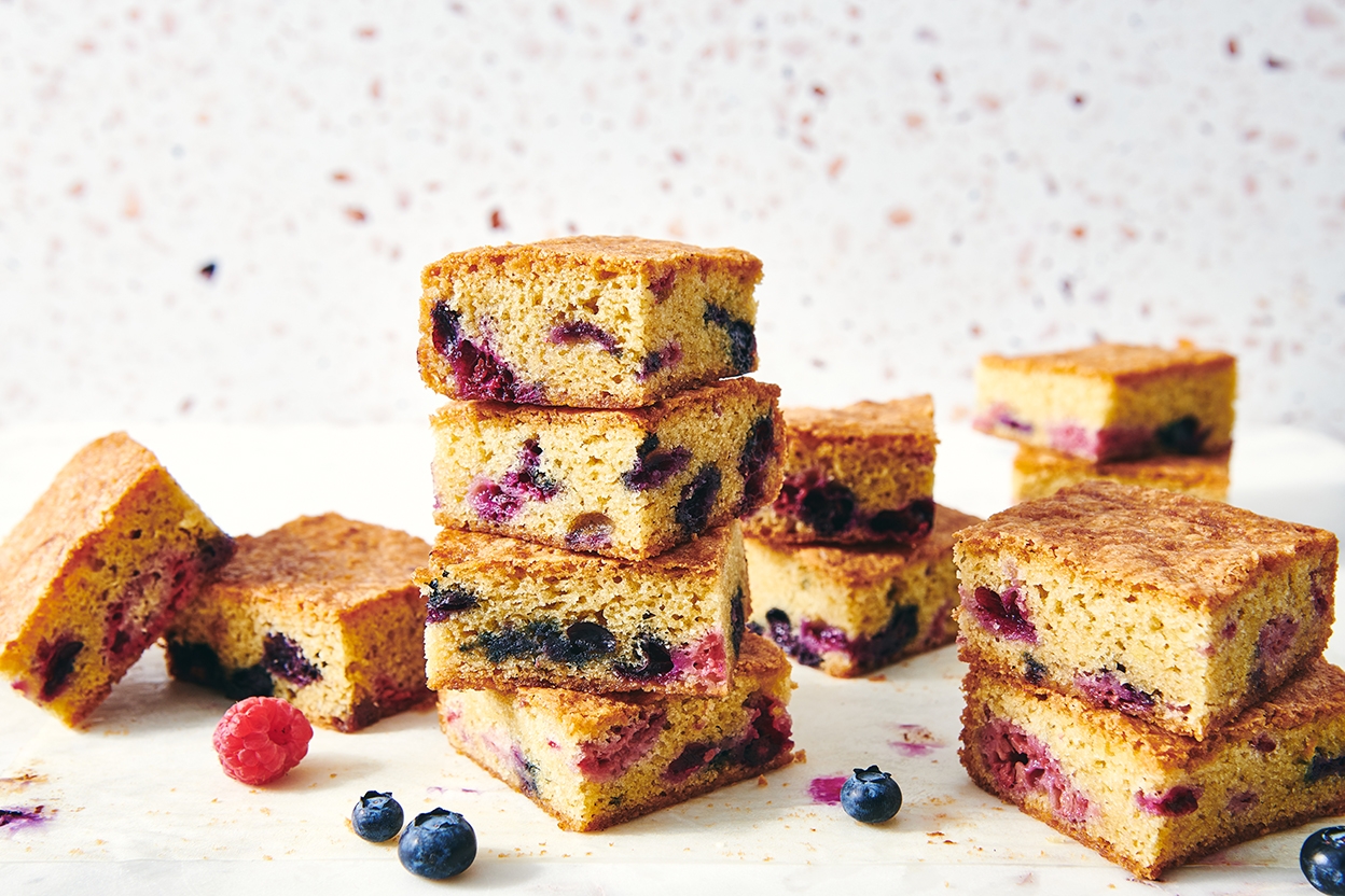 Bursting with berries, these colorful blondies are an easy, portable dessert. For a bigger crowd, double the recipe and use a 9" x 13" pan.