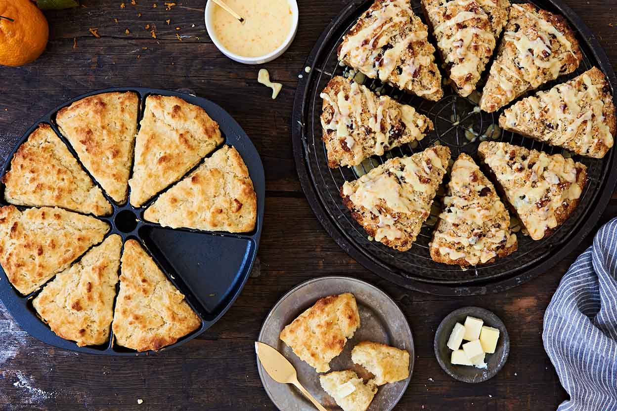 Sweeter than biscuits, scones have struck the American fancy and are showing up everywhere. Scones may be embellished with just about any fruit or flavoring that you can imagine. The following is a basic recipe to try in your new scone pan. It's easily altered by the addition of different dried fruits, nuts, chocolate chips, and/or spices.