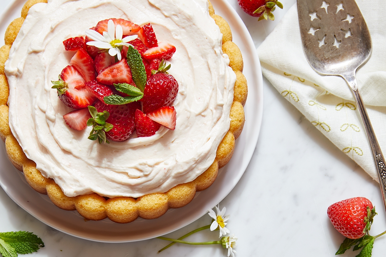 This easy, elegant springtime dessert features rich, tender sponge cake filled with a light strawberry mousse. For extra pizzazz, make a Mary Ann-style cake (pictured at right) using our Charlotte Cake Pan; to use an alternate pan, see directions in “tips,” below.