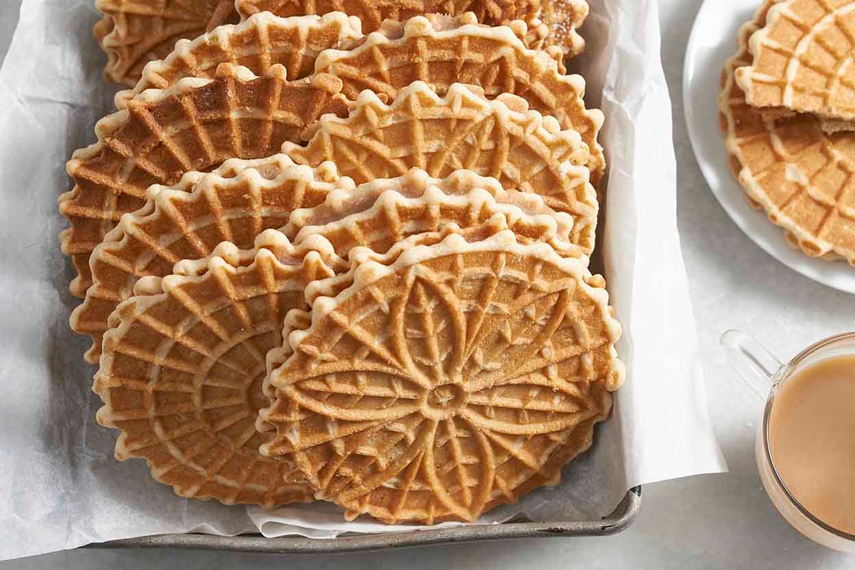 These caramel-cinnamon treats elevate the term "sandwich cookie" to new heights! You must have a pizzelle (or krumake) maker, preferably a "mini," to prepare these. You may use a regular-size pizzelle maker; the cookies will just be larger.