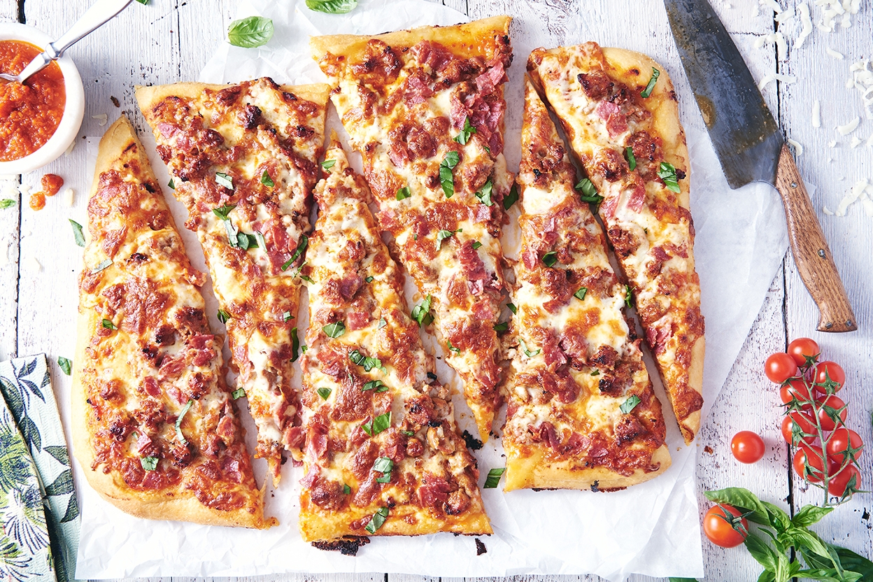 Warning: The following meat-lovers' pizza is neither low-calorie nor low-fat. But when you want to indulge all of your pizza cravings — layer on the sausage and salami! Pile on the cheese! — this is the recipe to grab.
