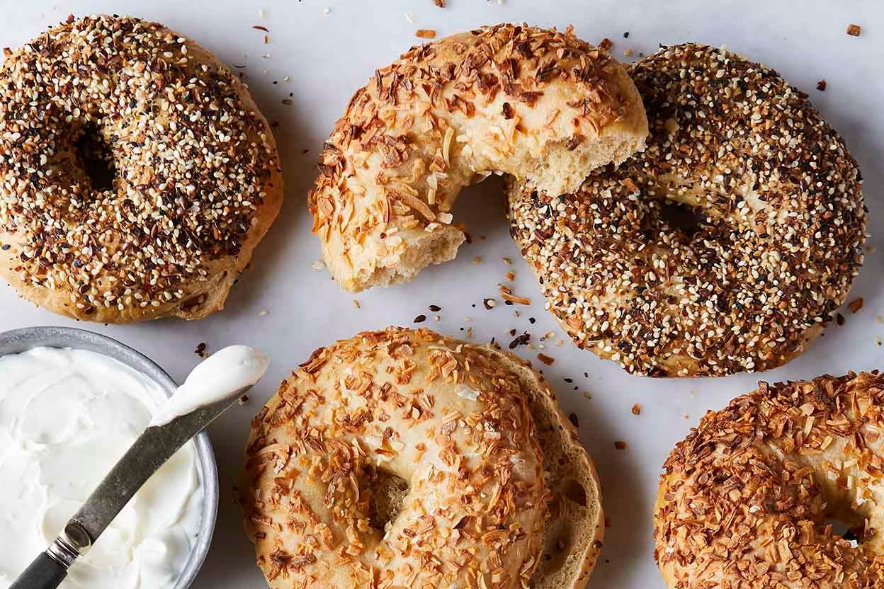 Using a spatula and your fingers, gently remove the bagels from the steam and return them to the baking sheets. Repeat until all of the bagels are steamed.