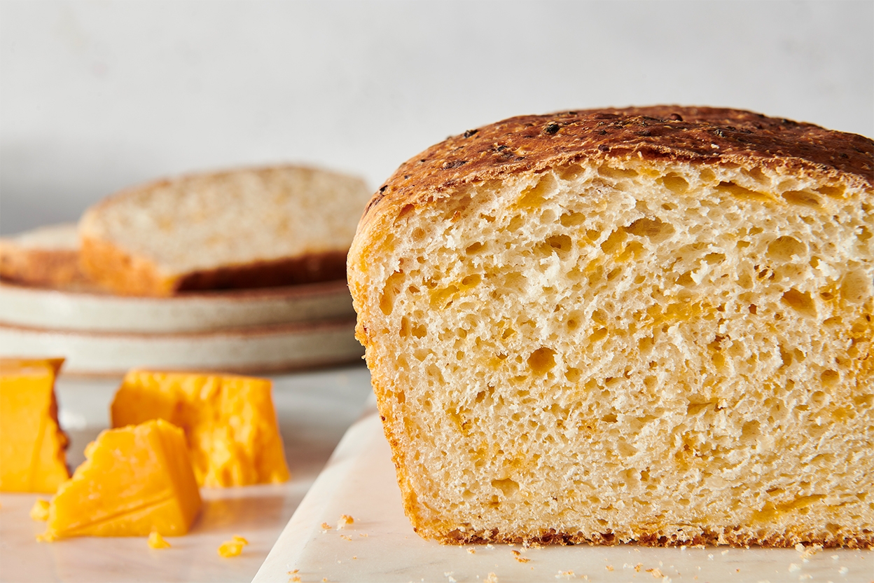 Three cheeses make this loaf a tender and flavorful treat for sandwiches. Divided into smaller pieces, it makes excellent dinner rolls.