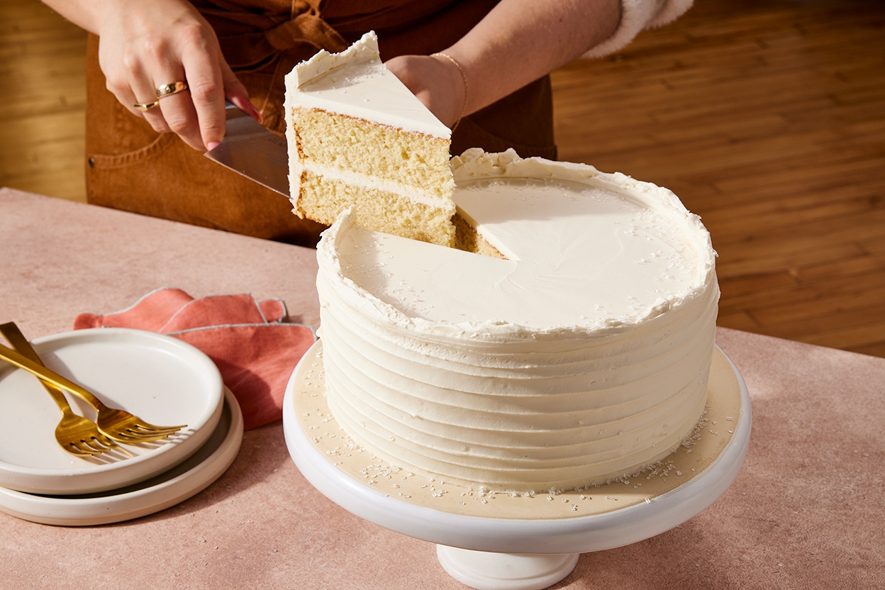 A cousin of Red Velvet Cake (minus the food coloring and cocoa), white velvet cake is a tender buttermilk cake with a fine crumb, and a moist-but-not-dense texture. The combination of vanilla, almond, and lemon is a classic cake trio; while none dominates, together they impart nostalgic "bakery-style" flavor in this cake. Its layers are ideal for frosting and stacking, making it the perfect celebratory confection for birthdays or other occasions. Stir sprinkles into the batter for the full “funfetti” effect.